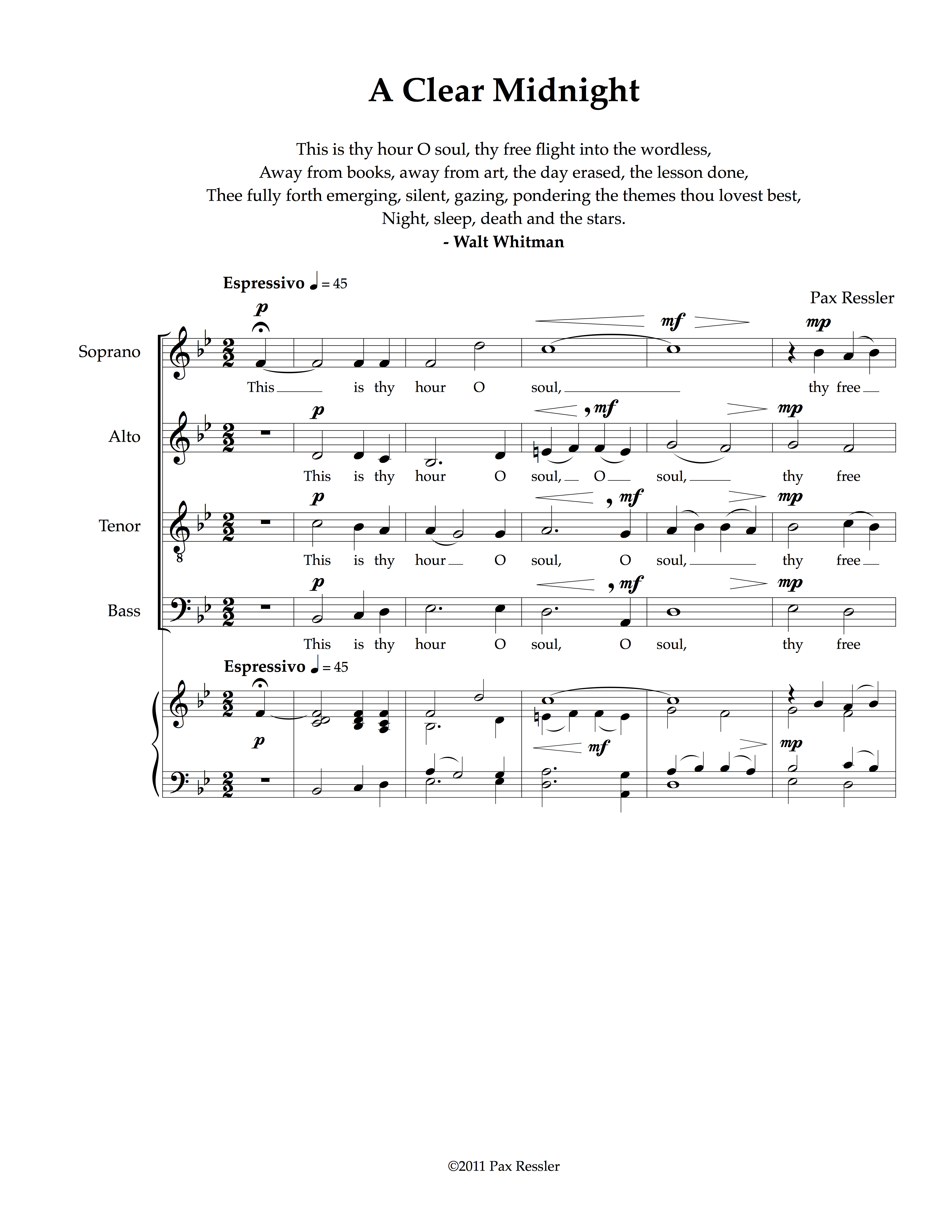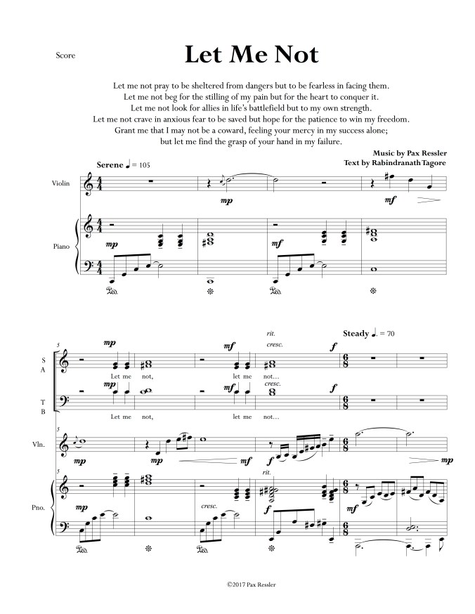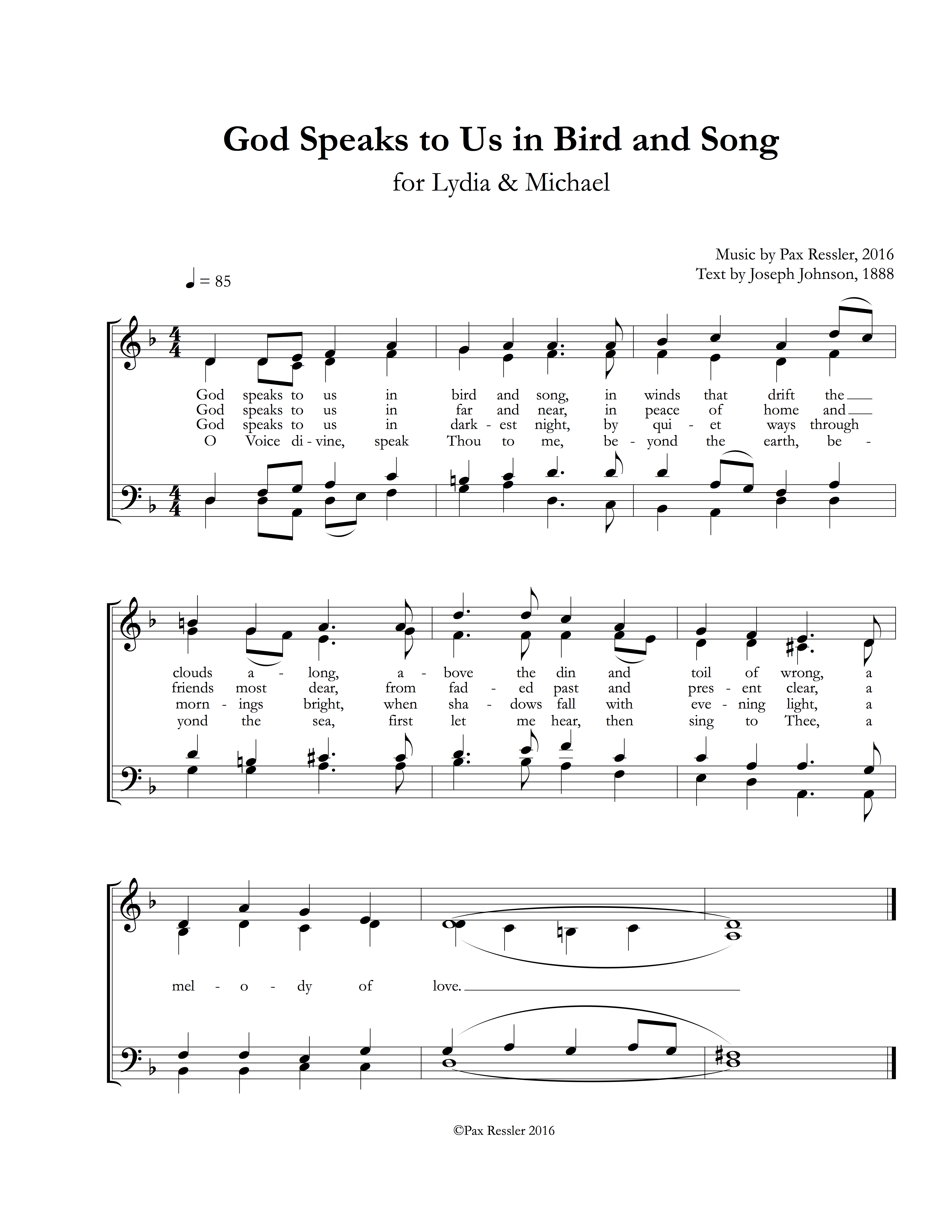 Music by Pax Ressler; original choral work for SSAA voices and piano