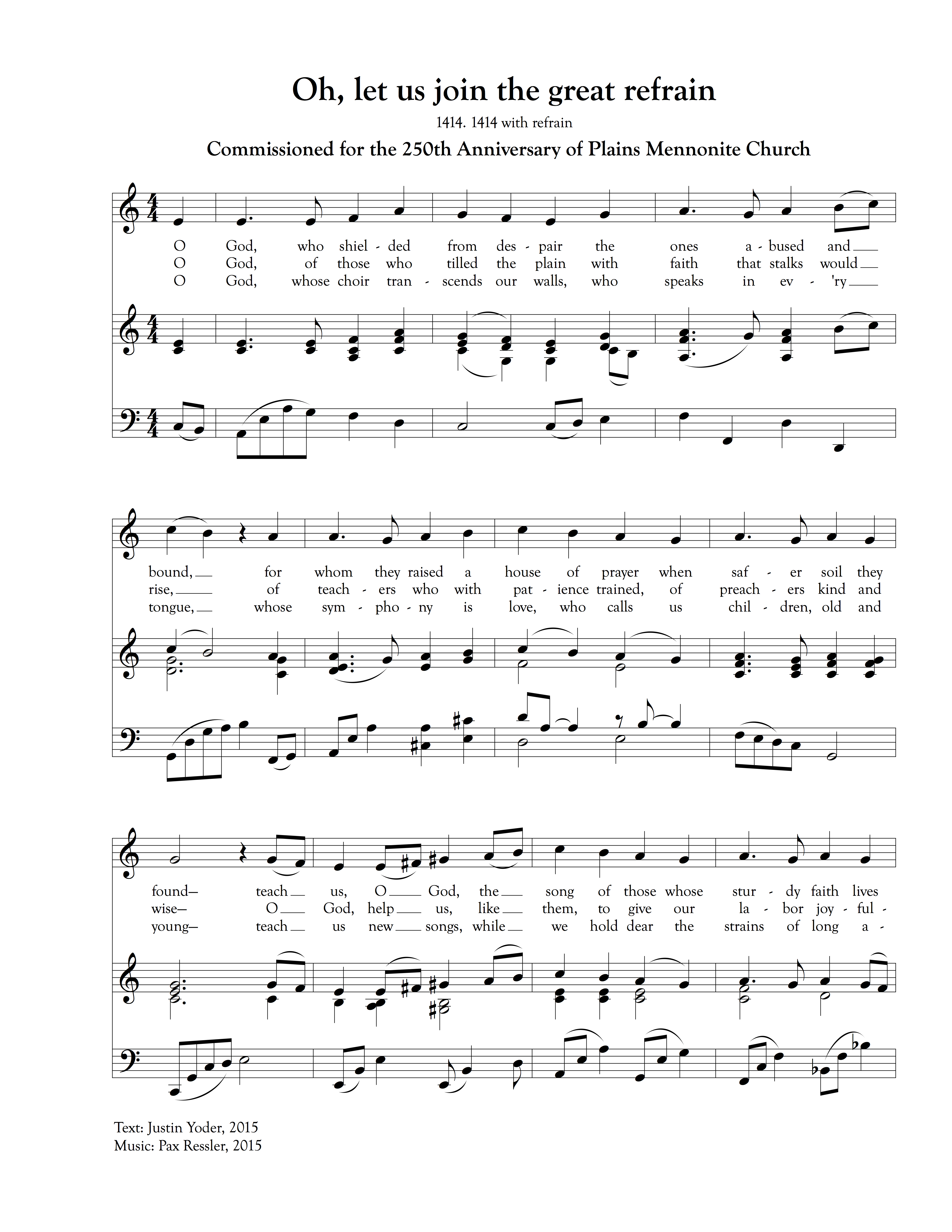 Premiered at the Anabaptist Mennonite Biblical Seminary Chapel in Elkhart, Indiana