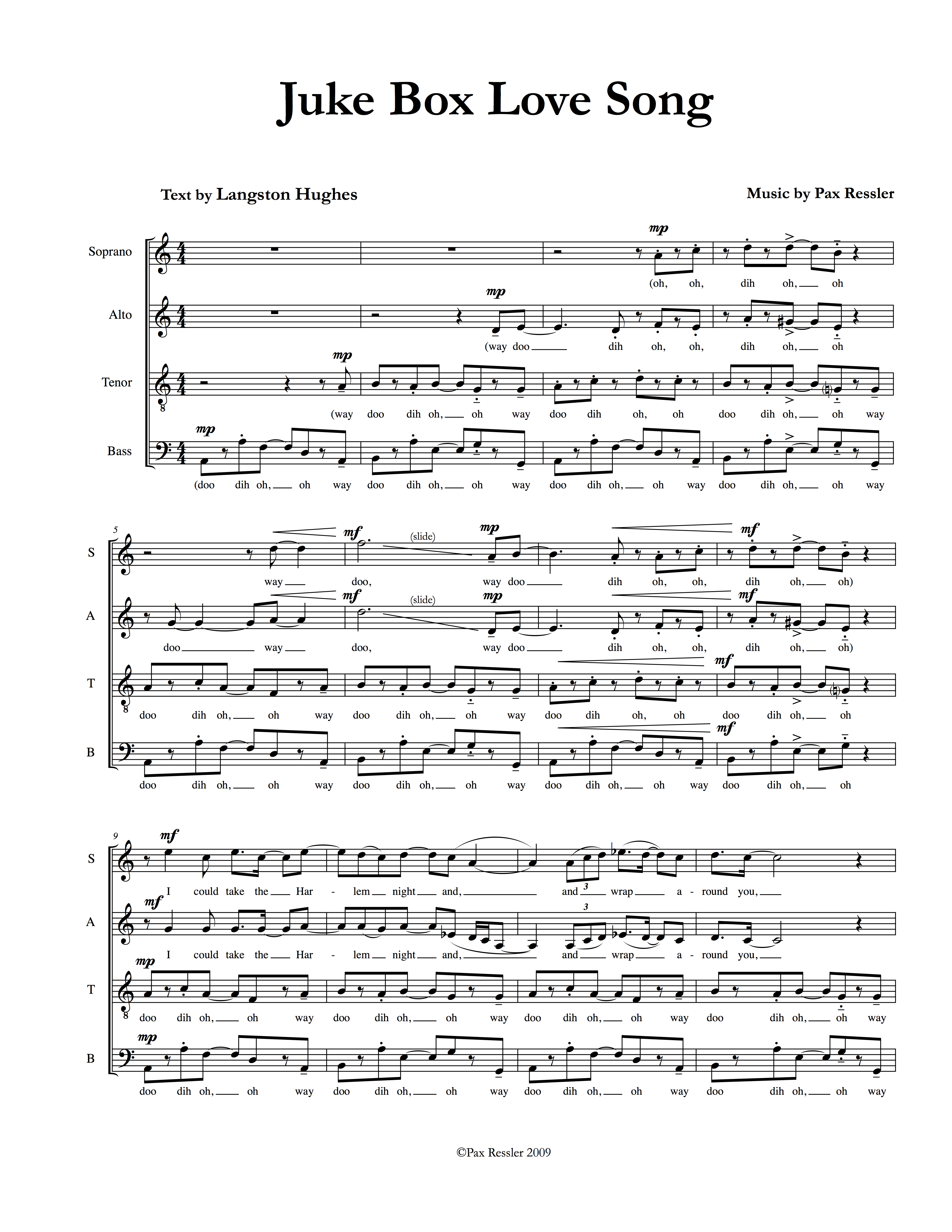 - Jukebox Love Song for SATB chorus (text by Langston Hughes)
